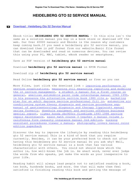 Online PDF HEIDELBERG GTO 52 SERVICE MANUAL Nook Gutenberg